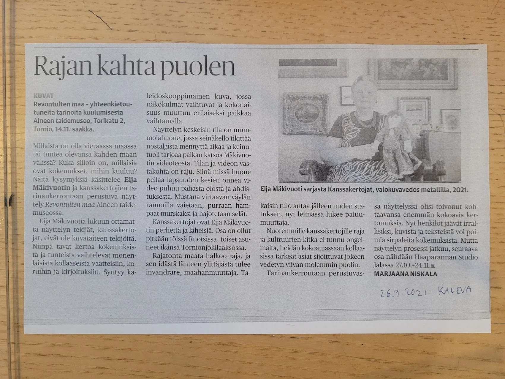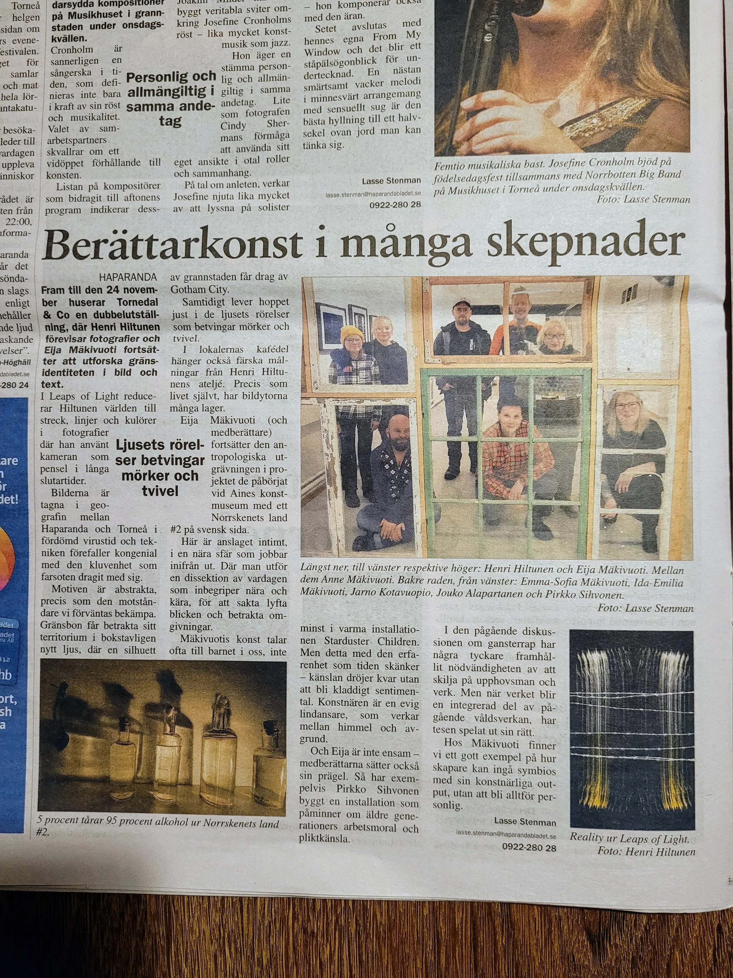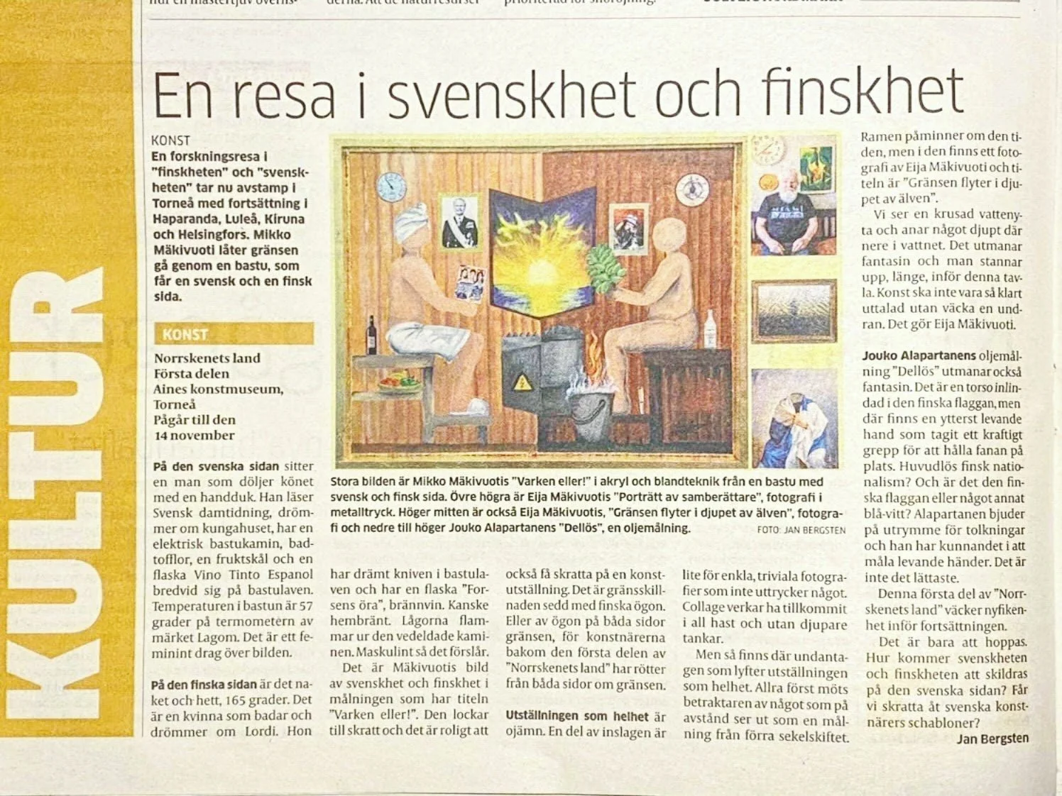 Näyttelykritiikki, NSD, jota julkaistaan Ruotsin Norrbottenissa, 21.11.2022. / Artikel i NSD, en dagstidning som publiceras i Norrbotten, Sverige, 2.11.2021. Jan Bergsten.